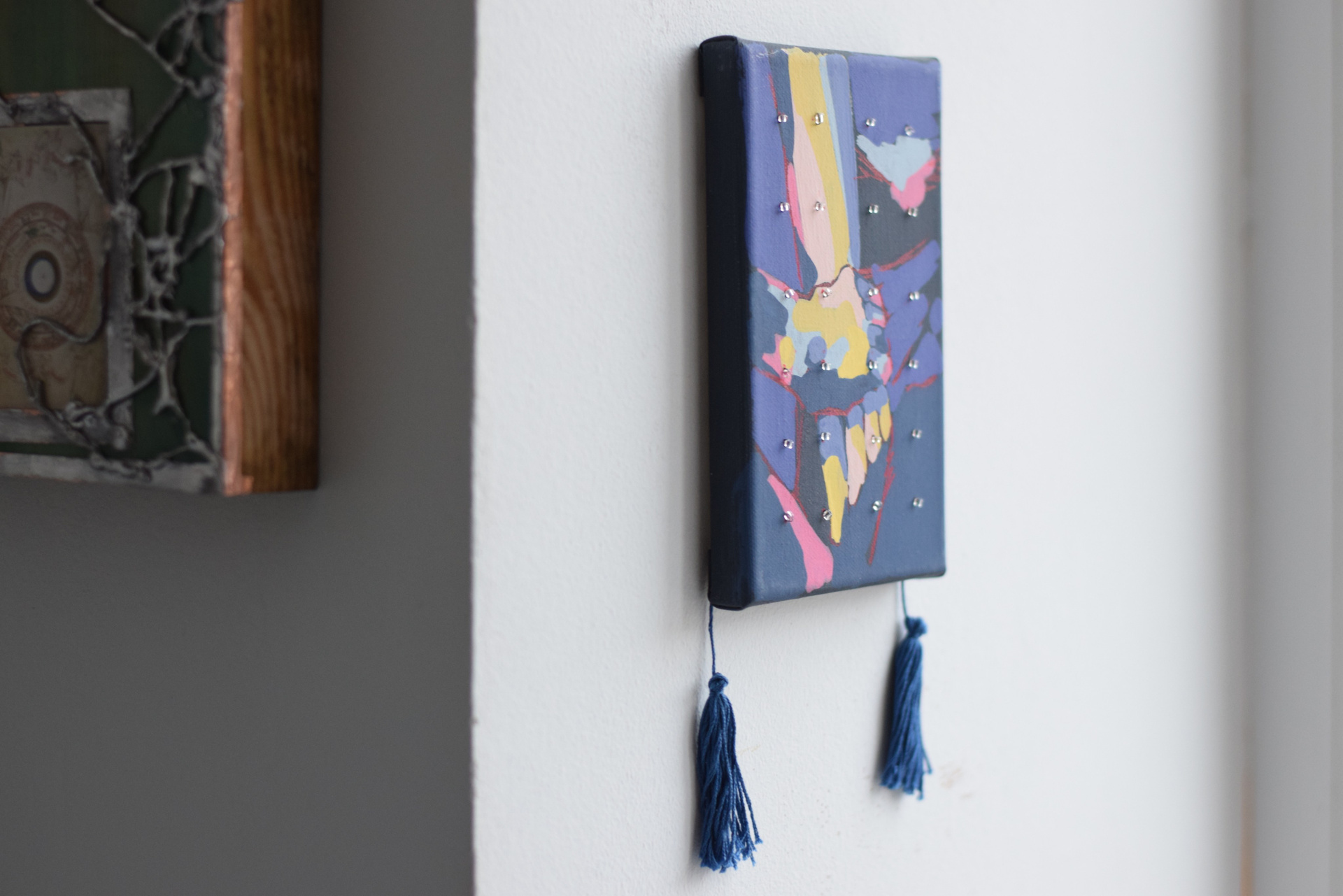холст, акрил, бусины