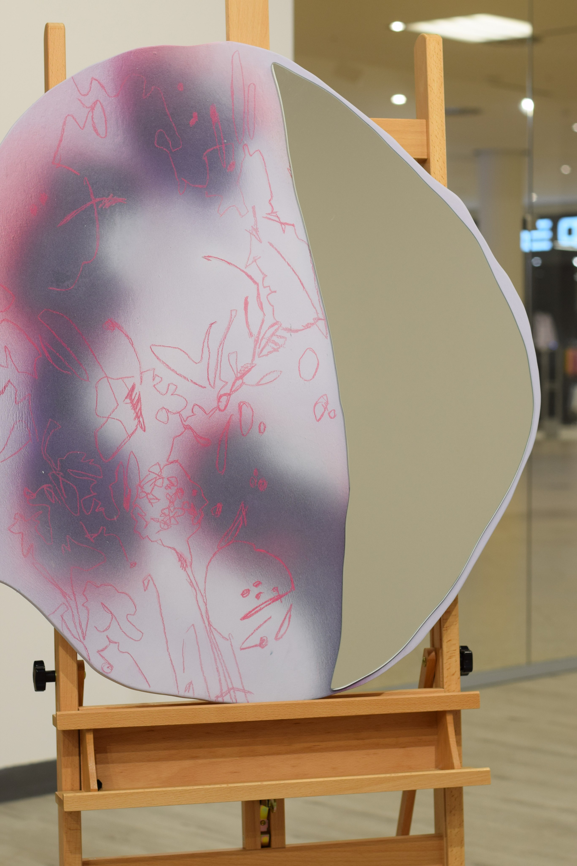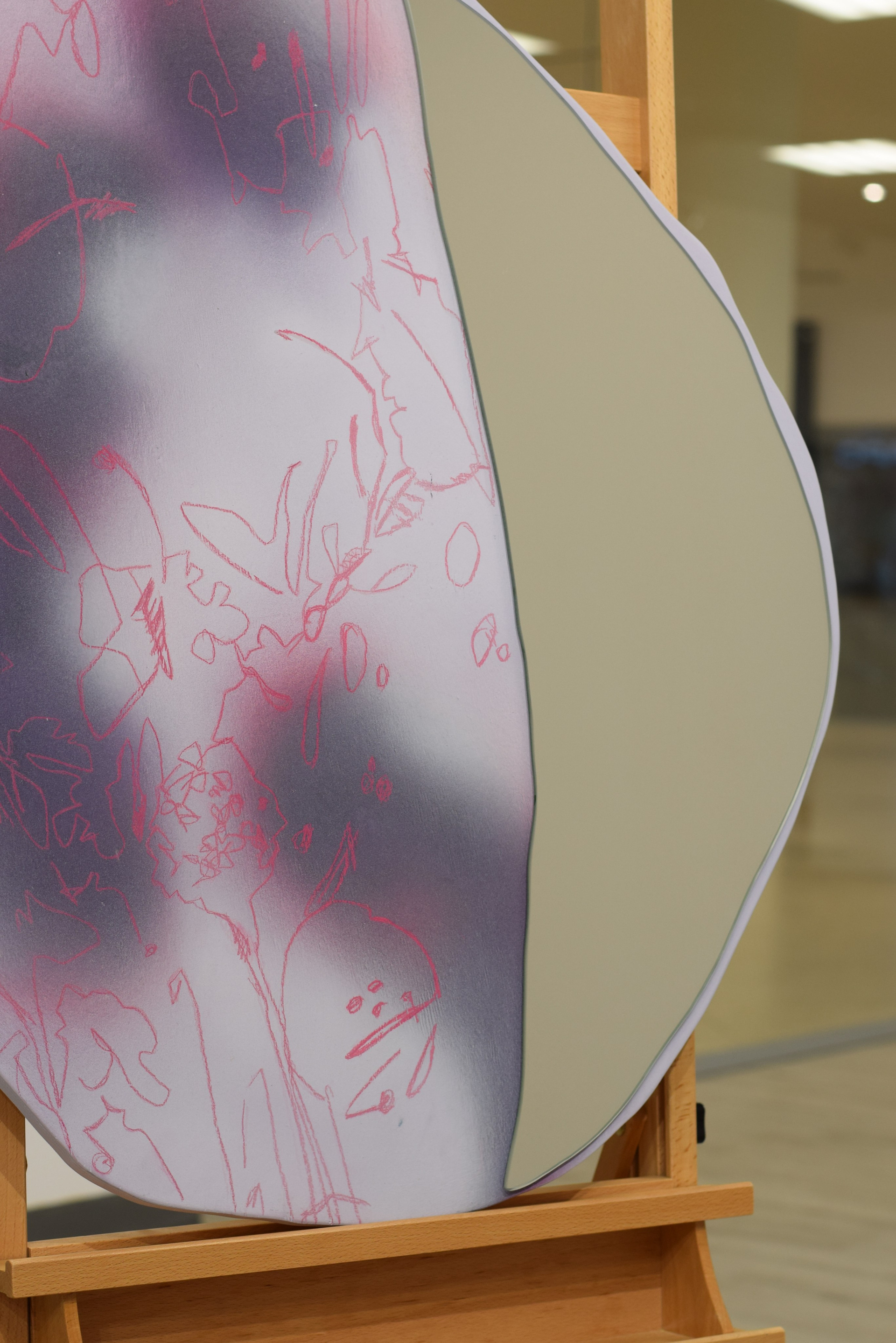 дерево, зеркало, акрил, карандаш