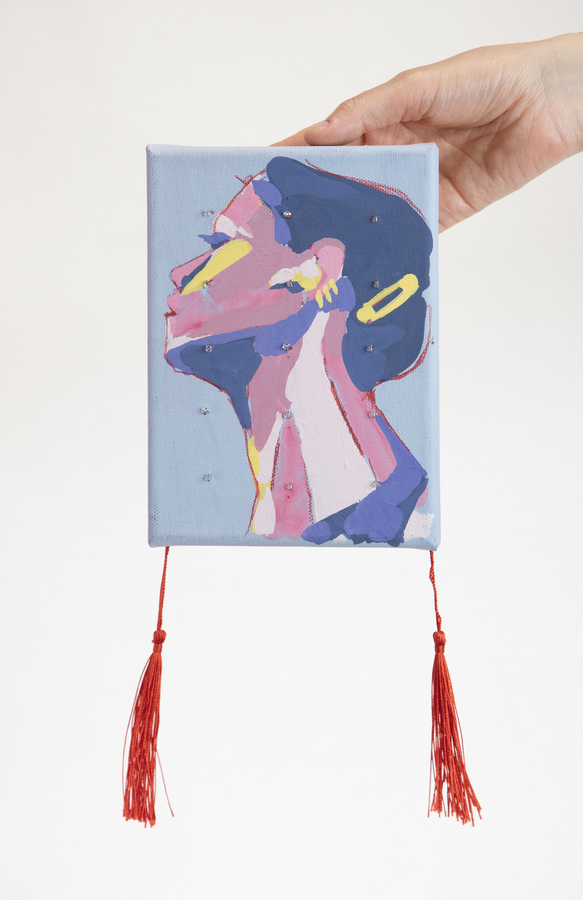 холст, акрил, бусины